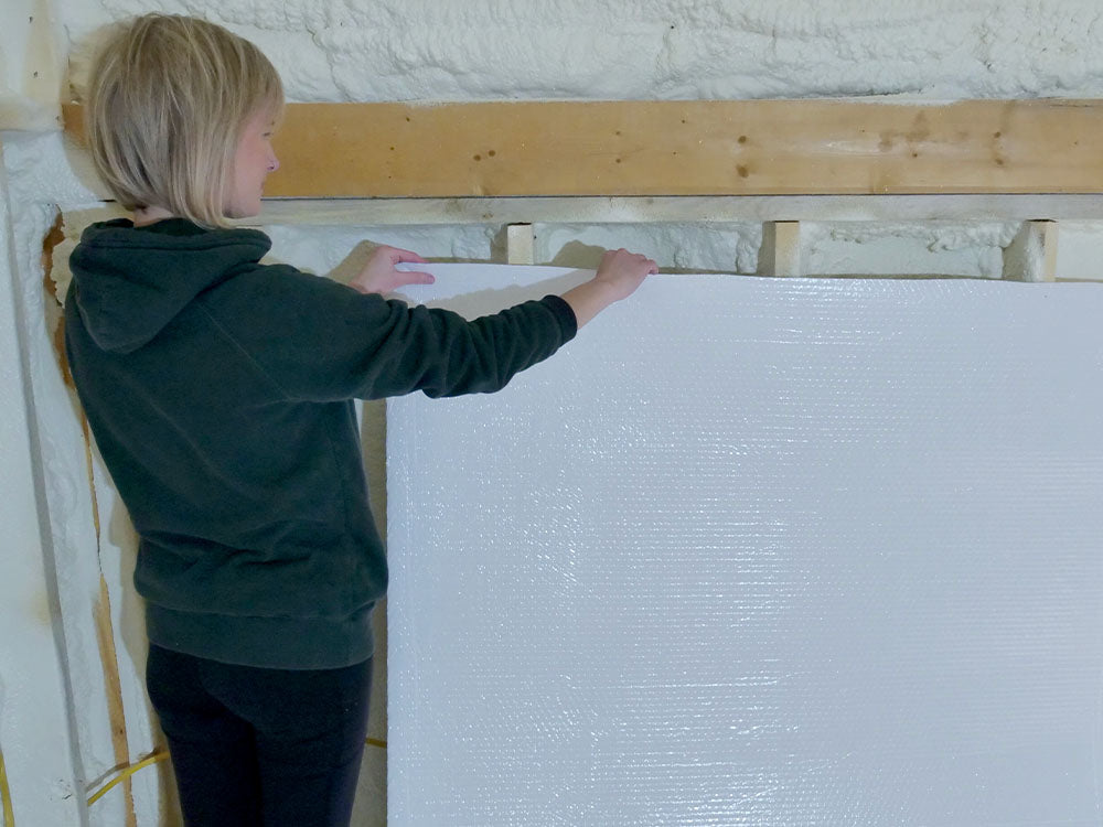 Thin, lightweight bubble foil insulation makes it easy to handle and install in your building’s walls, roof, and ceiling. Cut the foil insulation to size using a utility knife and seal up the seams using insulation tape.
